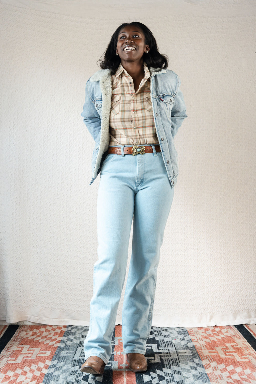 A classic Taylor Swift piece (if you know, you know) this sherpa lined denim jacket is a perfect spring piece. Much more stylish than a hoodie, this piece brings Jackson out of hibernation for a night out The Cowboy without the need to layer too much. Unisex size large.