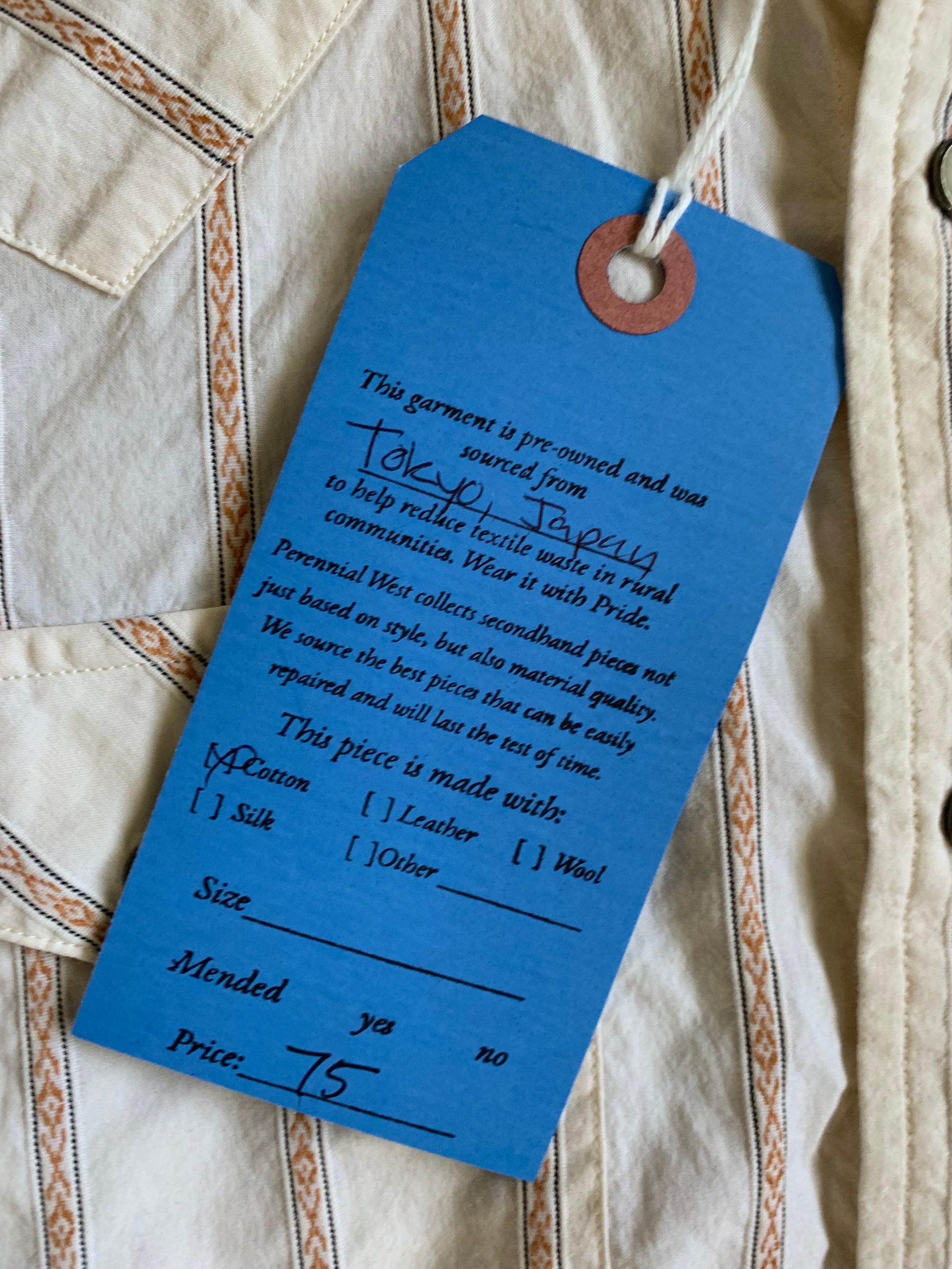 What would a bull rider in the 70's wear? I think something very akin to this striped shirt from Ralph Lauren. With the orange detail stripes and western yoke, to the pearl snap button downs, this piece reads vintage with a newer modern fabric. I'd see this one tucked into a pair of Wranglers and big ol' shiny belt buckle shining in front of it. Best fit women's extra small to small.